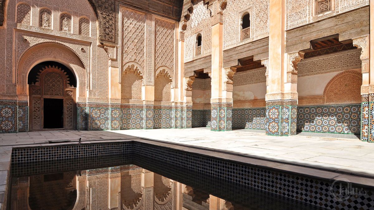 Koutoubia mosque is the most famous landmark of Marrakesh with its beautiful minaret which is visible from nearly every part of the city. The mosque’s call to prayer reverberates through the old part of the town, thus reminding tourists of the city’s strong spiritual heritage.